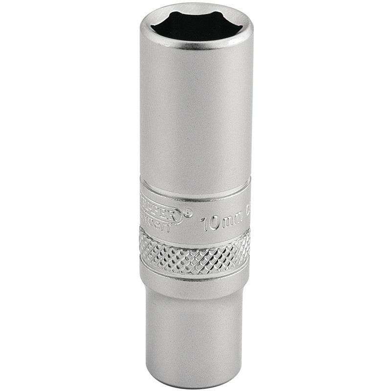 6 point deep socket manufactured from chrome vanadium steel hardened and tempered with a micro satin finish. Each socket has a knurled ring for extra grip.