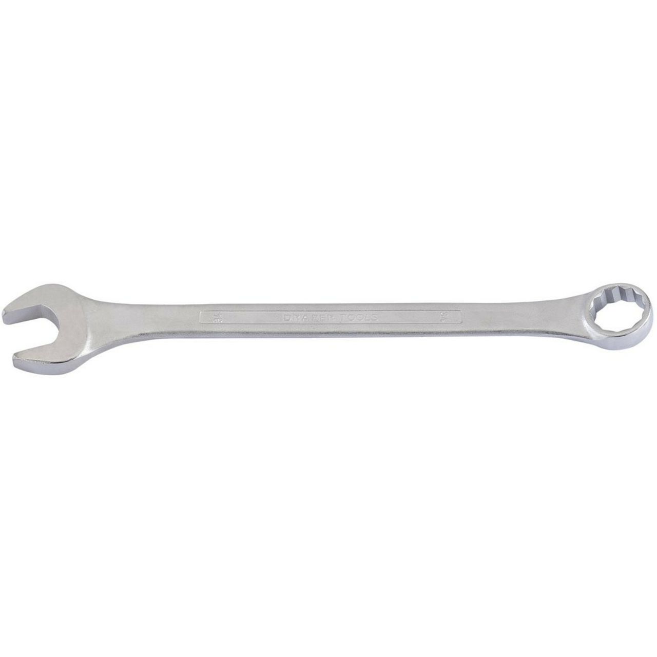 Heavy duty long pattern, fully drop forged chrome vanadium steel hardened, tempered and chrome plated. Polished ring end offset at 15°. Jaw offset at 15°. Sold loose in polybags with barcode label.