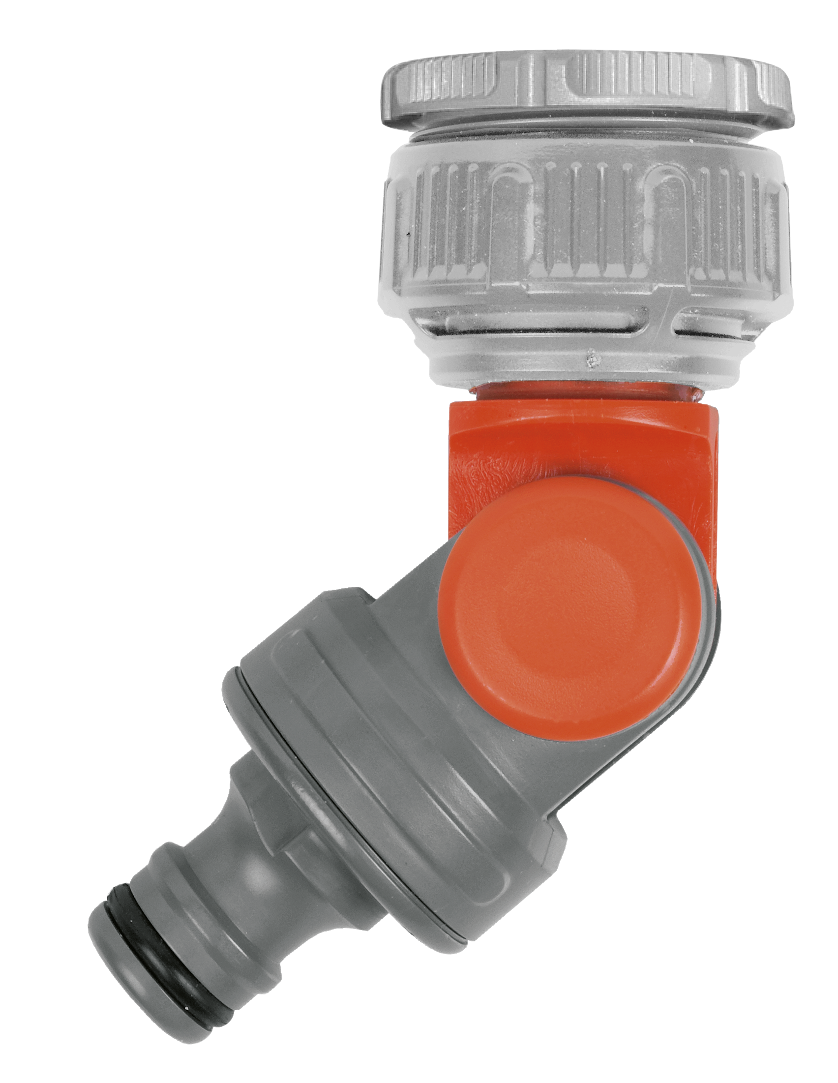 The Angled Tap Connector from GARDENA fits on to your water tap. The adapter is characterised by its ability to rotate and swivel. It is suitable for taps with 26.5 mm (G 3/4″) and 33.3 mm (G 1″) threads. The flexibility of the tap piece brings with it the great advantage that a hose connected using this adapter will not get kinked or twisted. As a result, water does not get blocked up in the hose, so it flows freely, and the hose is not damaged. The rotatable water connection is ideal for use with a hose trolley or reel because the hose won’t tangle. Due to its frost resistance, sub-zero temperatures are not a problem. The robust materials provide the high product quality made in Germany and bring great durability. GARDENA gives you five years warranty on the Angled Tap Connector. Das Original GARDENA System.