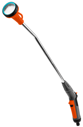 With the GARDENA Spray Lance, the garden can be gently and precisely watered. The water flow can be switched off. Soft plastic ring on the head to protect from damage. Thanks to its lenght it is particularly practical for larger areas. If the water flow is to be continuous, you can lock the pulse trigger. Tiring of the hand is thereby prevented. The hanger attachment allows quick and easy storage after use.