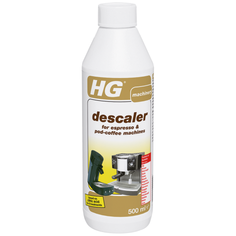 HG descaler for espresso & pod-coffee machines is an espresso machine descaler based on citric acid that removes scale from all types of espresso and pod-coffee machines. This espresso machine descaler works safely and quickly; it is odourless and fully biodegradable.