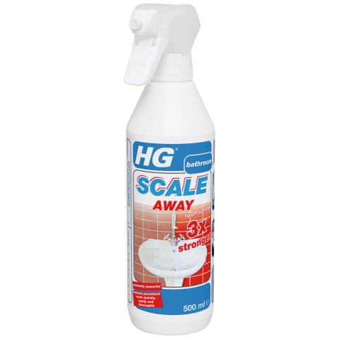 Remove stubborn limescale? HG scale away foam spray 3x stronger was developed to remove stubborn limescale thoroughly and quickly. This limescale cleaner leaves a wonderful shine after use. Our limescale cleaner removes limescale, which creates a dull glaze, from tiles, shower cubicles, plastic bathtubs, washbasins, taps, showerheads and kitchen worktops.