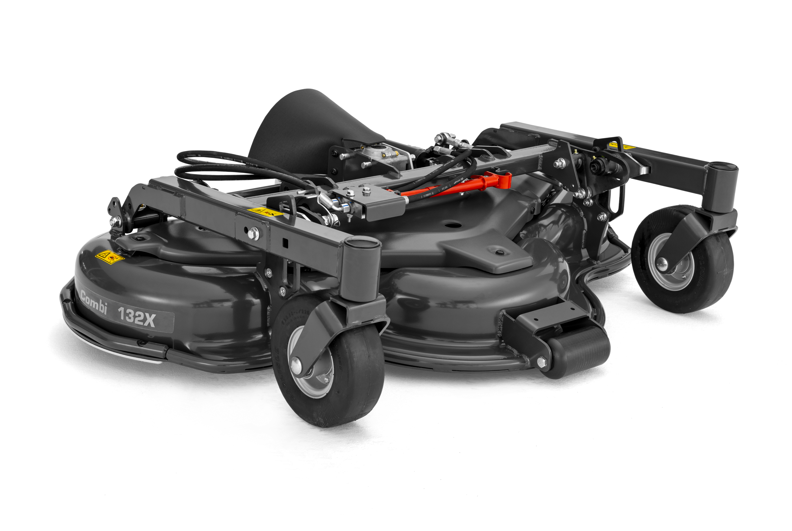 This Combi 132X deck is supplied for fitment to P 520D and P 525D machines. It requires the appropriate hydraulic kit on the tractor/ride-on for attachment — the hydraulic kit is not included.