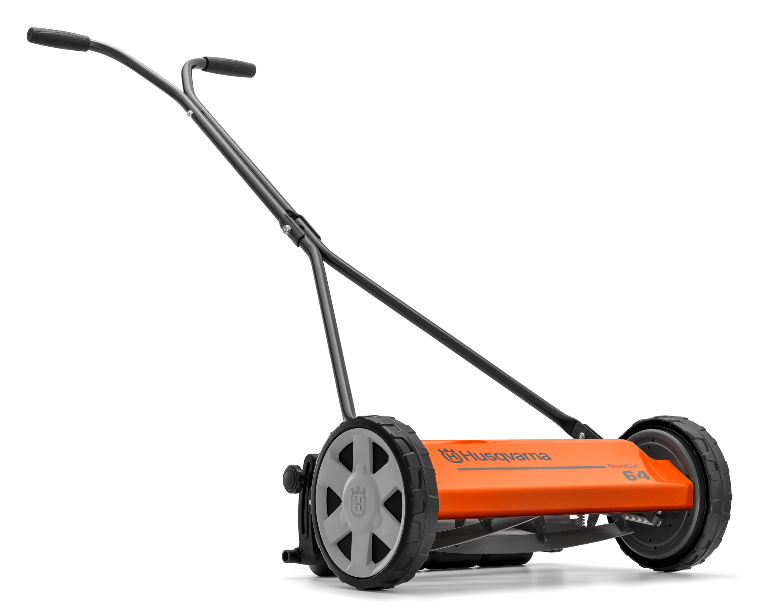 Practical, manual reel mower designed for neat cuts on lawns that are not maintained weekly. The HiCut 64 uses Husqvarna’s Novocut-style reel and bedknife arrangement with extra-hardened blades for durable, clean cutting. It has a 40 cm cutting width, fingertip manual height adjustment up to 55 mm and weighs 8.7 kg — straightforward to push and simple to maintain.