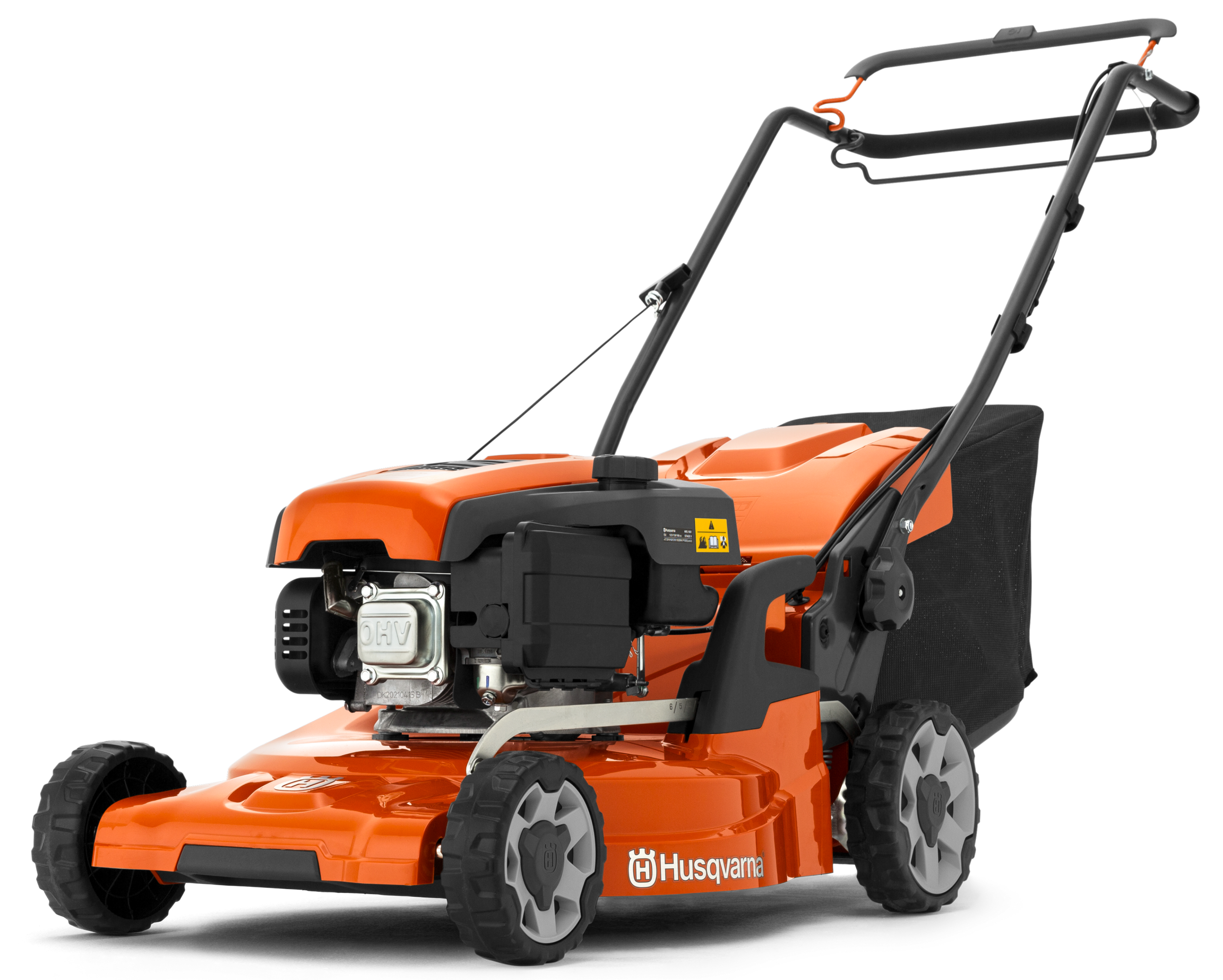 The mower is fitted with a Husqvarna HS 139A petrol engine with auto-choke for easier starting. Routine maintenance is standard: check and change the oil as required, keep the air intake clear, sharpen or replace the blade when needed and empty the collector after use. Refer to the user documentation for service intervals and fuel/oil recommendations.
