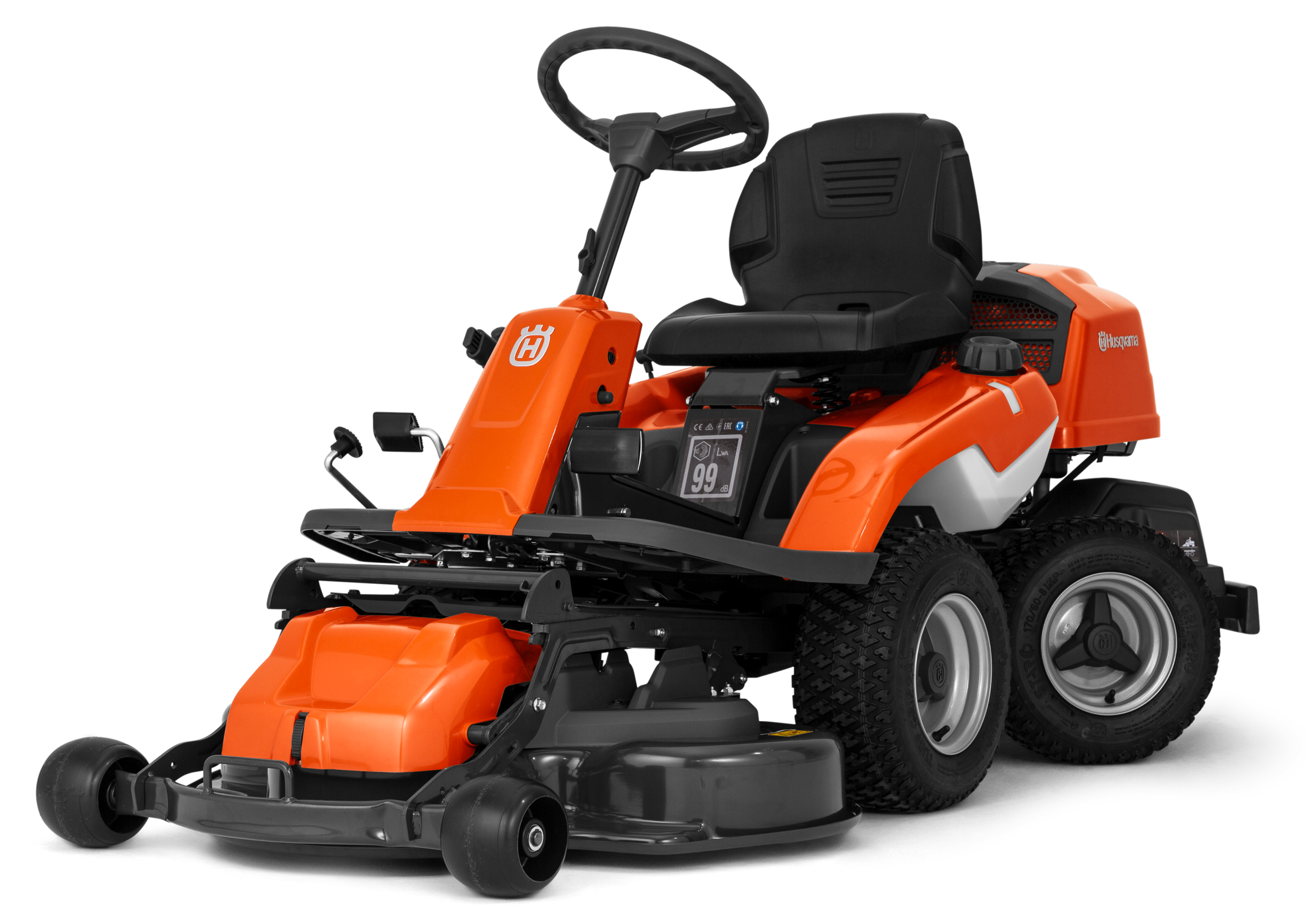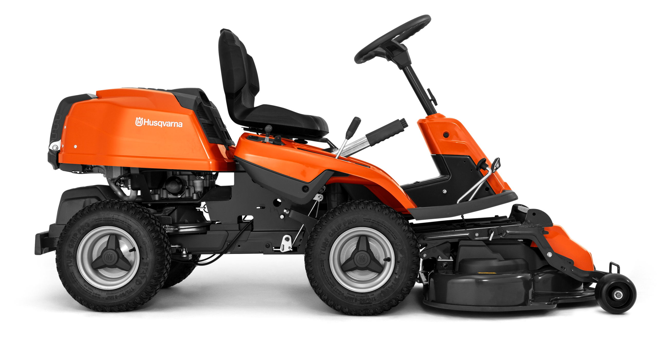 The rear-mounted engine provides a better overview of the mowing, and less noise and emissions in the driver’s area, compared to riders with front-mounted engines.
