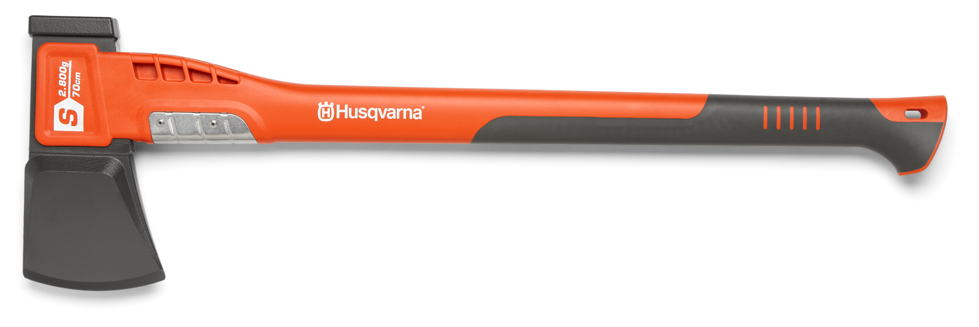 A purpose-built splitting axe for larger logs. The S2800 pairs a specially coated, wedge-shaped head with a fibre-reinforced PA shaft and stainless-steel shaft protection for durable, low-friction splitting. The balance point close to the head concentrates force into the cut and the milled backside provides a hammer function for driving non-hardened wedges.