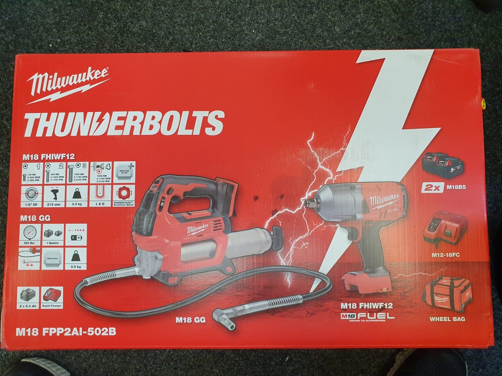 Milwaukee M18 FPP2AI-502B 18V Impact Wrench & Grease Gun Powerpack With 2 x 5.0Ah Batteries Charger In Bag 4933472104